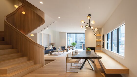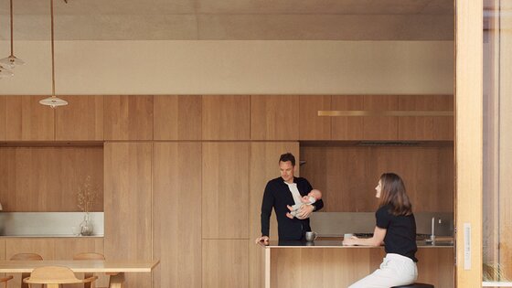 SCHRITT 4. In Bereichen von 5– 10 m² arbeiten. Beginnen Sie zunächst mit den Randbereichen und ölen Sie diese mit einem beigen oder roten Rubio Monocoat Scrubby Pad. Anschließend mit einem Pinsel alle 0,5 m eine kleine Menge Oil Plus 2C auftragen. Das Produkt mit einer Poliermaschine mit einem beigen oder roten Rubio Monocoat Pad (16 Zoll) in Holzfaserrichtung verteilen.