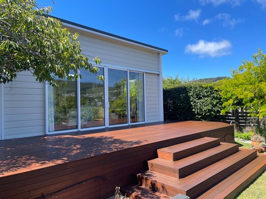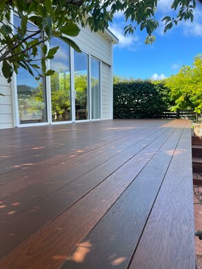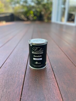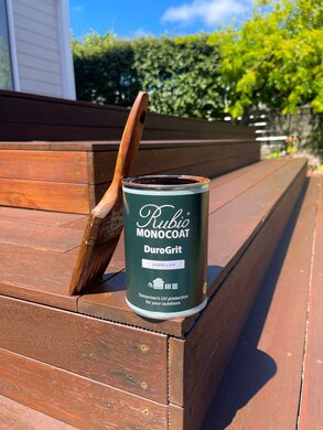 Bei dieser Wohnterrasse trifft Neuseeland auf die Great Plains! Die 95 m² große Kwila-Terrasse wurde mit DuroGrit in der Farbe Steppe Look geschützt. Sie erhielt einen warmen Farbton, der einen schönen Kontrast zur Landschaft bildet.
