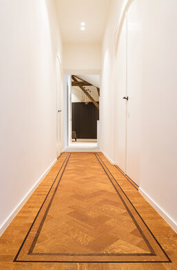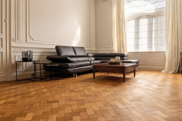 Ursprünglich bestand dieses schöne Haus im belgischen Ronse aus den 1920er Jahren aus zwei separaten Bauten. Die Eigentümer beschlossen, die ursprünglichen Strukturen zu erhalten, um daraus ein großes Haus zu machen. Neben den authentischen Elementen wollten sie auch die natürliche Optik der Holzböden bewahren. Mit dieser Vision begann Che Polfliet von der Firma C-Parket, die Holzböden mit Hilfe von Rubio Monocoat Pre-Aging und Oil Plus 2C aufzufrischen und zu renovieren.