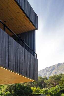 WoodCream wurde für die Außenverkleidung dieses atemberaubenden Domizils in Hout Bay, Kapstadt, ausgewählt, da das Finish das Aussehen von Shou Sugi Ban nachahmt (eine alte Technik aus Japan zur Holzverbrennung). Das Haus wurde von Musa Renovations and Projects nach Entwürfen von Salt Architects gebaut. Die Besitzer wollten eine Verkleidung in einem modernen, jedoch nicht zu „glatten“ Look, mit einem Finish ohne starken Glanz. Mit WoodCream wurde ein natürliches Erscheinungsbild geschaffen, das die Komplexität der natürlichen Maserung und des verwitterten Looks unterstreicht. Die Entscheidung fiel nicht nur wegen der Ästhetik auf WoodCream, sondern auch, weil es einfach in Anwendung und Pflege ist.