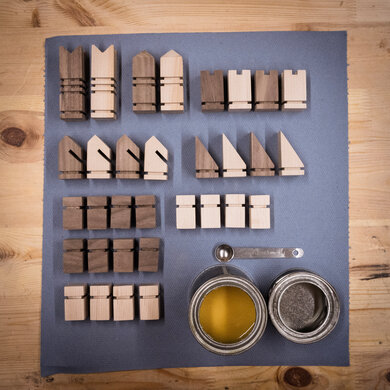 Das Set ist aus Ahorn und Walnuss gefertigt.